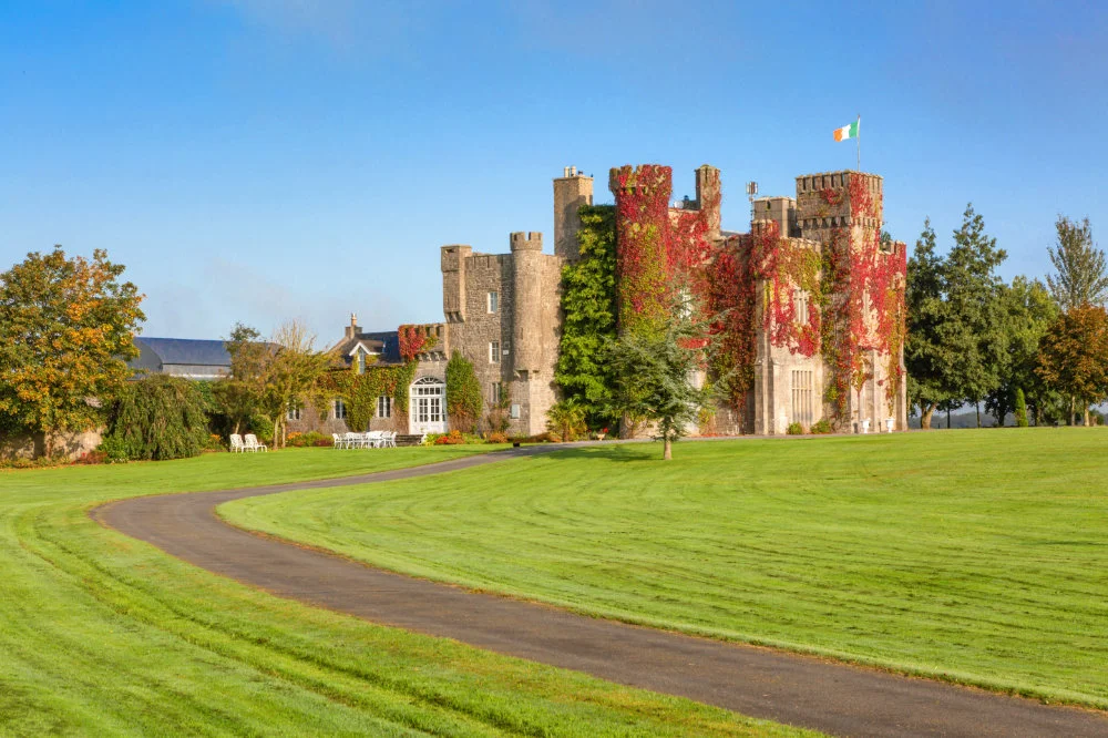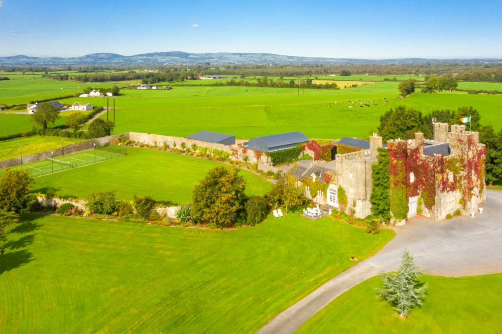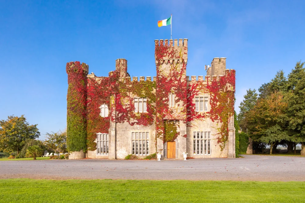 Lisheen Castle is a restored 19th-century rental castle near Thurles, offering luxury self-catering rental or guided group tours for 12+. All the rental packages run weekly. Weekly packages include transport, meals, and daily excursions. The host is Zane Everar, whose family took over the castle in 1995 and was lovingly restored with his parents from a ruin to the beautiful castle that stands today. They opened Lisheen Castle in 2000, after the restoration was complete. The castle combines antique interiors with rural charm. Located in the heart of Ireland, Lisheen Castle serves as the perfect location to visit Irelands most breath taking attractions. Guests can explore Ireland’s Hidden Heartlands from this unique heritage base nestled in the Tipperary countryside. It is the ideal place to relax and unwind with large lawn areas, a patio seating area and a walled garden.